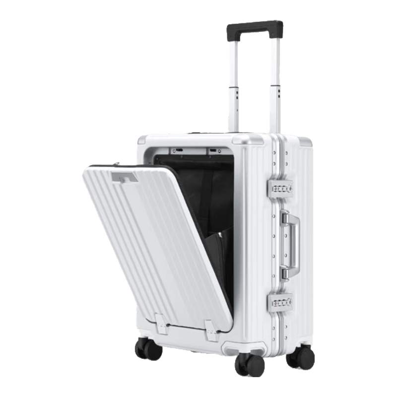 这款行李箱的前开口设计,使得取物更加方便,告别了传统行李箱的繁琐操作。其哑光白色的外观也为商务旅行增添了几分优雅。