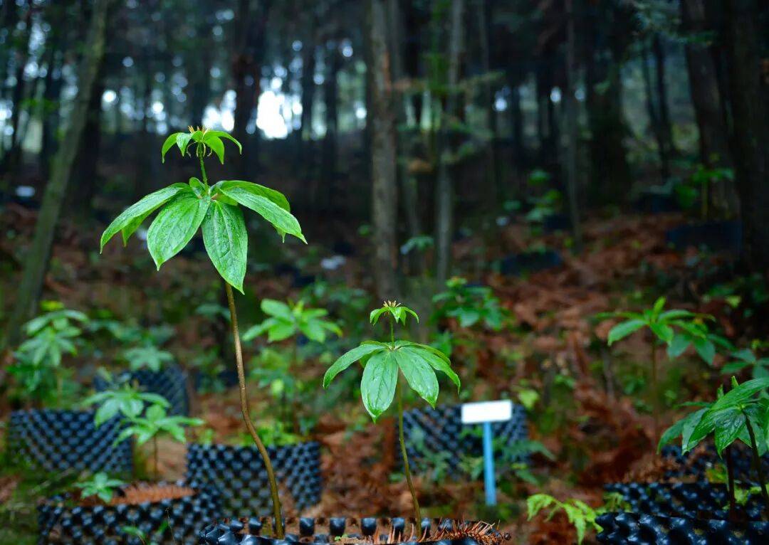 “这些‘粗管子’的学名叫作限根容器,不仅能够规范林下中药材的种植,还能防止坡地的水肥流失。”基地负责人单技坪说,通过开发限根容器林下中药材野生抚育模式,当地实现了在不砍树、不破坏生态环境、保持生物多样性的前提下,进行生态立体循环种植。